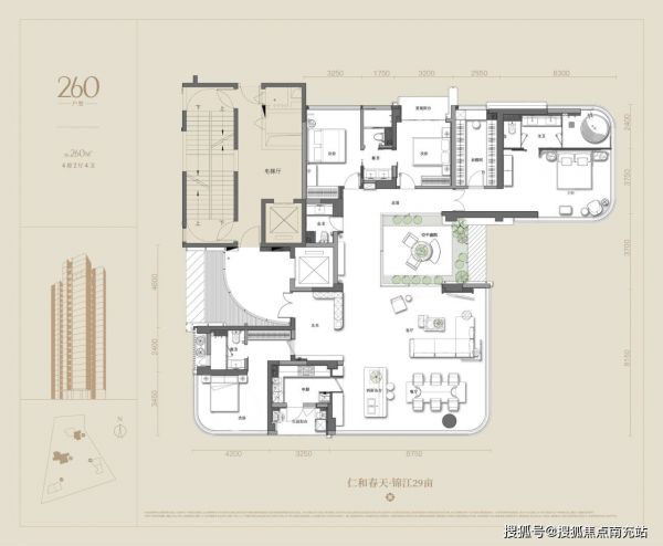❣260㎡四室两厅四卫三阳台,内外双花园+360°环绕式采光: