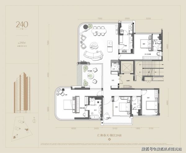 ❣240㎡四室两厅四卫三阳台,大面宽空中花园: