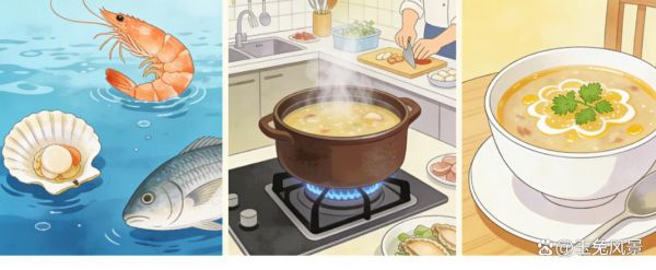· 目的:为海鲜羹提供一个鲜美醇厚的基底,而非仅仅是水和调味料。