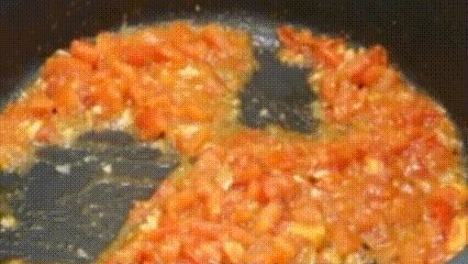 再往炒锅里面加少许的油,倒入葱蒜末,爆出香味,倒入番茄,炒出番茄汁,再加少许的盐继续翻炒,这样炒出来的番茄比较容易软烂,炒出浓稠的汁!