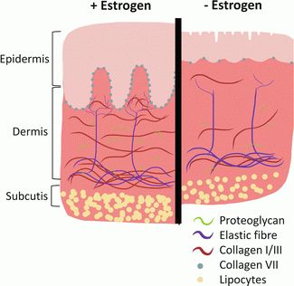 图1:雌激素水平变化对皮肤抗衰多项健康指标的影响