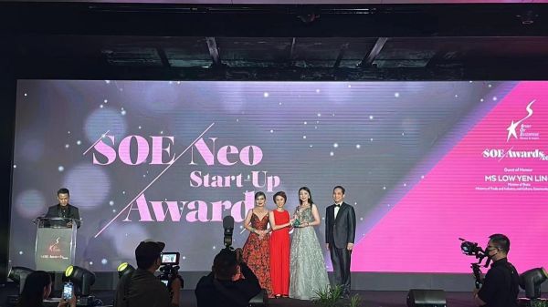 图为创始人郭瑞娟荣获新加坡企业家精神奖,部长颁奖现场