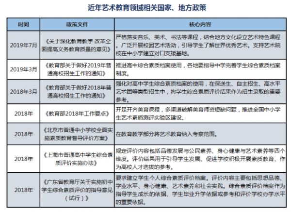 1、综合素质评价体系逐步建立,政策长期利好艺术教育