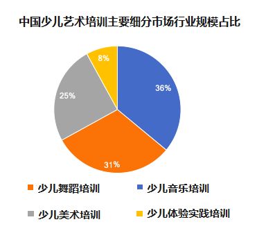 同时,经济发展推动消费结构不断优化,消费升级持续拉动艺术教育需求。目前,我国少儿艺术培训的市场格局上,舞蹈培训和音乐培训占据前二,市场份额均突破30%,美术培训排名第三,占25%左右。