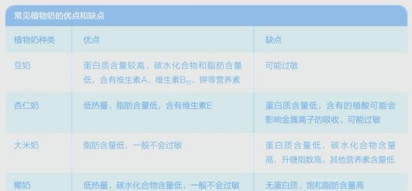 替代奶中植物蛋白难以提供全部必需氨基酸,因此选择时应关注添加的维生素D和钙。