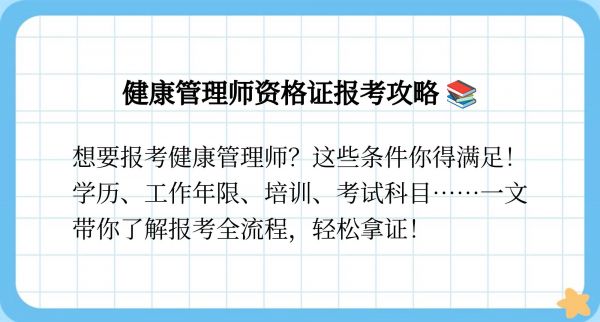 健康管理师资格证的报考条件相对明确,主要分为以下几个部分: