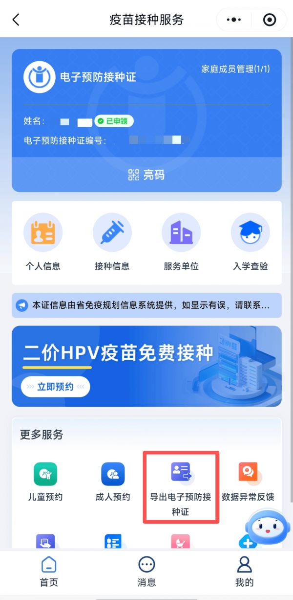 ☆ 如需下载孩子的电子预防接种证,可通过首页“家庭成员管理”进行切换,并下载PDF版本保存。