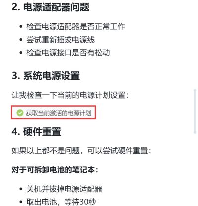 3.检查系统设置与驱动:AI助手会自动获取当前激活的电源计划供您核对,并检查电池设备状态,确认驱动层面是否正常。
