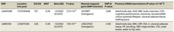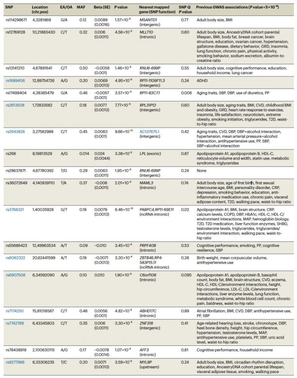 Rosoff, D.B., Mavromatis, L.A., Bell, A.S. et al. Multivariate genome-wide analysis of aging-related traits identifies novel loci and new drug targets for healthy aging. Nat Aging 3, 1020–1035 (2023).