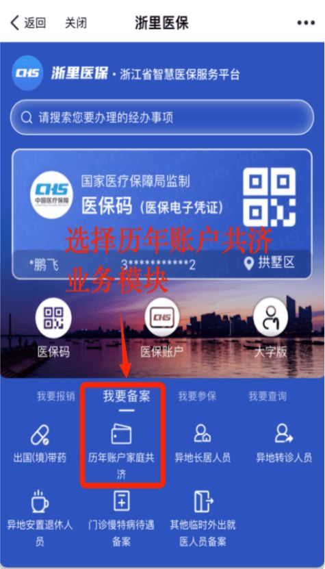 2.点击“我要备案”→“历年账户家庭共济”。