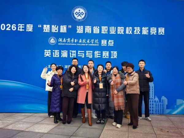 2月1日至2日,2026年度“楚怡杯”湖南省职业院校技能竞赛“英语演讲与写作”赛项在湖南外贸职业学院圆满落幕。我院代表队在基础学院赵迎春、邵毅、洪金梅、陈跃华、曾娅妮等老师的全程悉心指导下,凭借扎实的英语功底、突出的应用能力与良好的综合素养脱颖而出,共斩获该赛项一等奖3项、三等奖2项,充分彰显了我院英语教学改革成效与学子的青春风采。