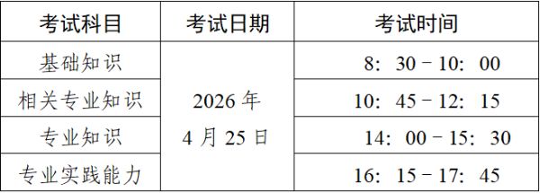 2.报名参加2026年度考试人员,其取得学历和从事本专业工作年限计算均截止到2025年12月31日。