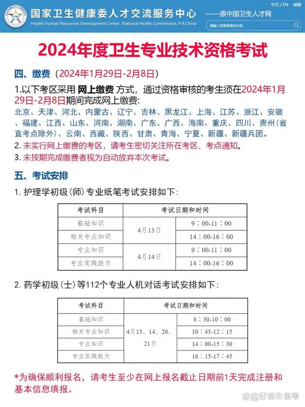 关于2024年度卫生专业技术资格考试报名工作的通知
