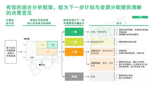 项目优先级排序:完成所有项目梳理后,运用组合分析框架对项目进行优先级排序。这不仅包括对单个项目的评估,还需综合考量项目间的耦合关系,如协同效应(项目间是否共享研发资源、产品上市后是否存在销售协同价值)、蚕食效应(产品是否针对相同市场或客群,导致销量相互挤压)等。