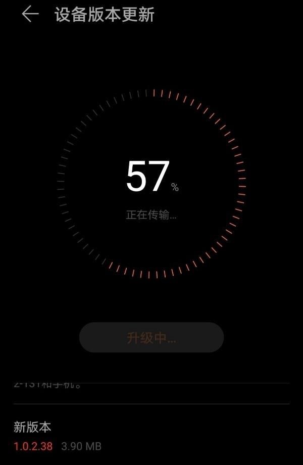 1)运动健康 APP 传输升级包100%后,请继续等待安装进度条完成,确保完成升级