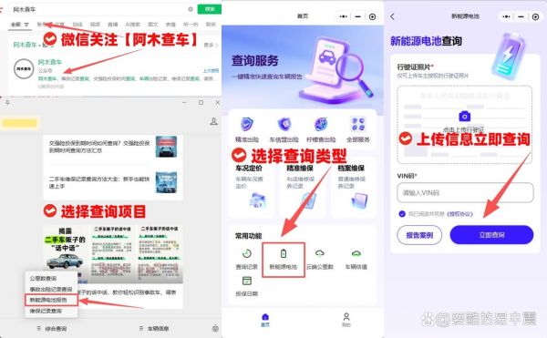 总的来说,查询新能源电池健康的4种方法各有优势:车辆自带中控/APP查询适合日常高频查看,免费又方便;4S店/厂家查询权威精准,适合二手车交易、精准检测;保险公司查询能联动保障信息,适合日常核实和理赔准备;微信【阿木查车】公众号查询高效快捷,懒人首选。