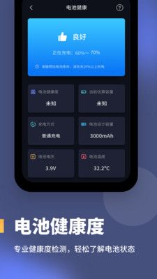 电池健康度App是一款专业的手机电池管理工具,能够实时监测电池状态并提供智能优化方案。它能精准检测电池健康程度、充电状态及各项参数,同时提供个性化的充电建议,帮助用户提升充电效率并延长电池寿命。无论是日常使用还是紧急充电,这款软件都能为您提供可靠的数据支持和实用功能,让手机电池管理变得更简单高效。有需要的小伙伴快来下载体验吧!