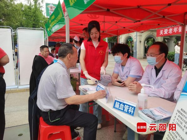 活动现场人头攒动、热闹非凡,邵阳市中心医院等9家市直公立医院和邵阳爱尔眼科医院等4家民营医院派出医疗小组,免费为老年人开展量血压、测视力、测血糖等基础诊疗服务,针对检查结果,结合每个人的具体情况给予专业建议,并向大家普及常见疾病的预防知识。邵阳红优质农产品公共品牌促进会带来了健康养生茶宣传产品,引来市民驻足围观。市老干部大学学员为观众送上二胡弹奏、跳绳舞蹈等精彩节目,增添了欢乐气氛。