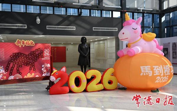 2月20日,正月初四上午,常德市丁玲纪念馆洋溢着喜乐融融的新春气息。馆内馆外妆点一新,树梢与屋檐下垂挂的小红灯笼随风轻摆,大厅中央一座以“马”为主题的可爱装置吸引着来往游客的目光。春节期间,该馆推出“巧手纳福·童趣贺岁”系列亲子手工活动,让市民在动手创作中感受传统佳节的文化魅力。