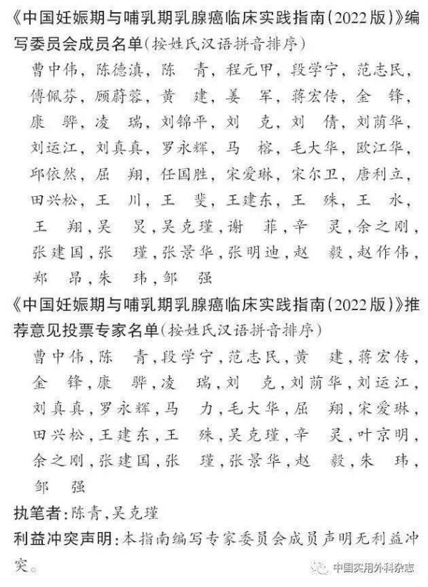 【引用本文】中华医学会外科学分会乳腺外科学组. 中国妊娠期与哺乳期乳腺癌临床实践指南(2022版)[J]. 中国实用外科杂志,2022,42(2):146-150.