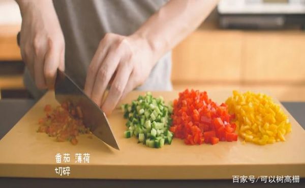 甜椒切法,我比较喜欢这样切去,首先横切头部和底部,然后按照纵向切去里面的芯,然后切成小细条,最后将小细条切成小丁。黄瓜也切成3~4毫米的小丁,番茄就随便切一下,切碎就可以了,薄荷也是一样。然后把所有食材和鹰嘴豆放入碗中,再加入半个柠檬汁,黑醋汁2~3大勺,盐和黑胡椒进行最后的调味,搅拌均匀即可。鹰嘴豆沙拉能量425大卡、蛋白质11.45g、脂肪24.88g。如果你不吃肉的话,这是一个非常好的选择。