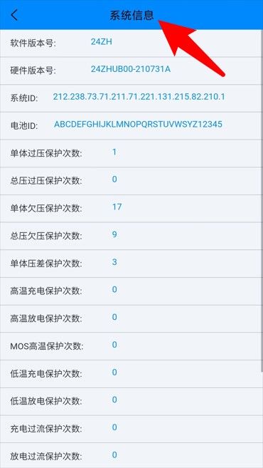 4、系统信息页面展示软件版本、电池ID与各类保护触发记录,便于故障追踪排查。