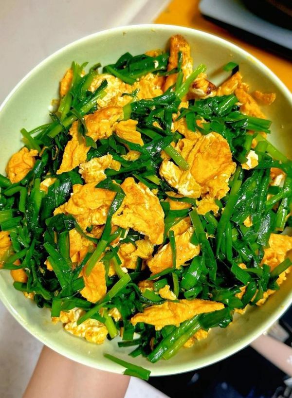 这样炒出来的韭菜,绿得发亮,脆嫩不出水。鸡蛋蓬松柔软,裹着韭菜的香气,吃一口满嘴都是早春的鲜灵劲儿。