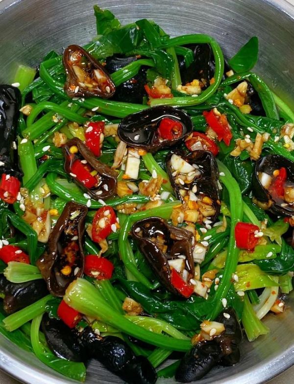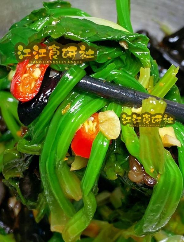 这道菜,菠菜脆嫩,木耳咯吱作响,酸辣开胃,吃一口就停不下来。