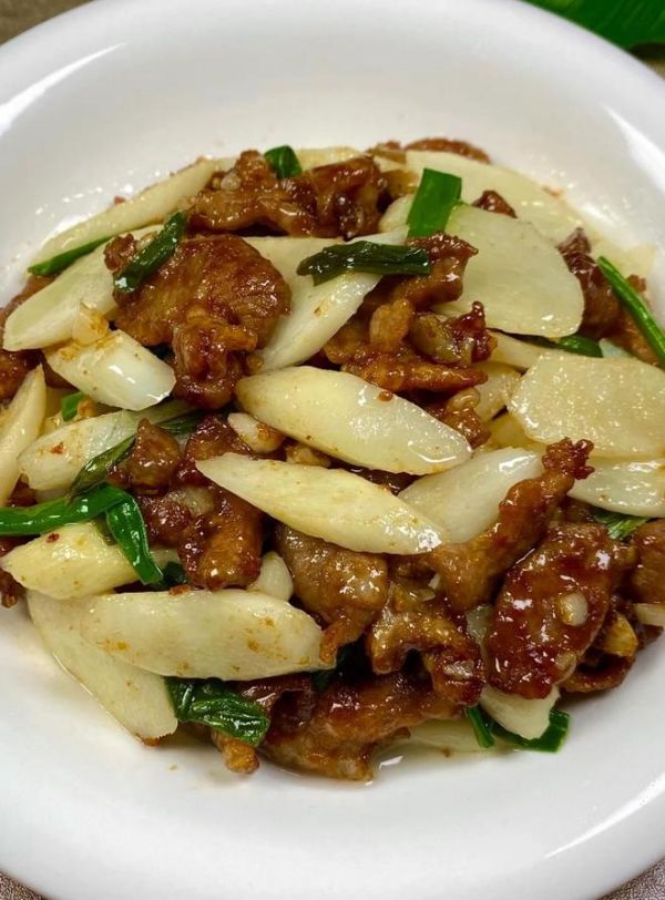 山药炒着吃,清脆爽口,搭配滑嫩的肉片,是一道老少皆宜的家常菜。