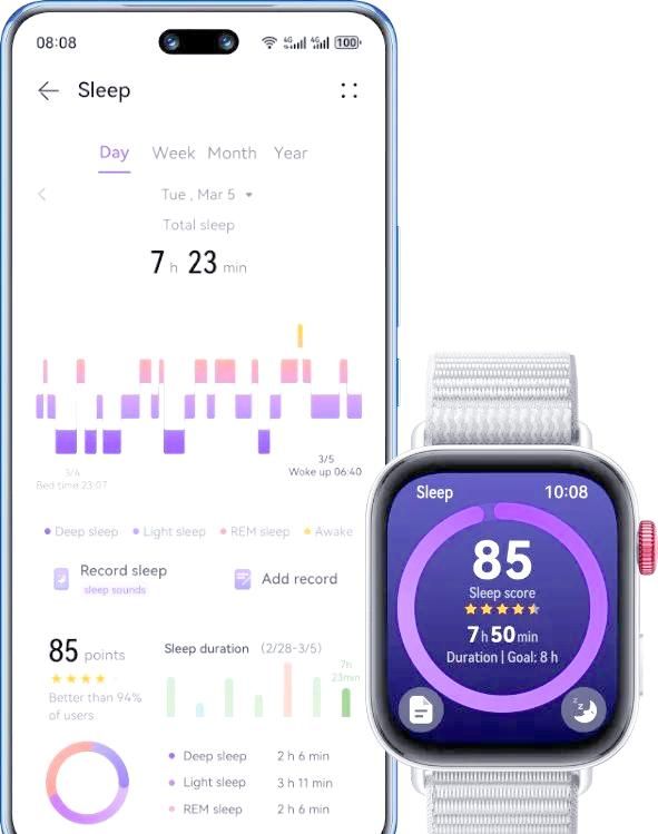 四:华为Watch Fit 3在睡眠监测方面也取得了显著进步,得益于TruSleep 4.0系统的引入,该系统新增了“高级科学睡眠增强”功能。相较于前代产品Watch Fit 2,它提供了更为全面的睡眠追踪方案。这一系统提供详细的睡眠质量分析报告,深入检测并详细分析用户的睡眠活动、个人习惯以及睡眠模式,从而为用户提供一份详尽的睡眠质量报告。该报告基于业界公认的睡眠质量标准编制,旨在助力用户更细致地洞悉自身的睡眠状况。