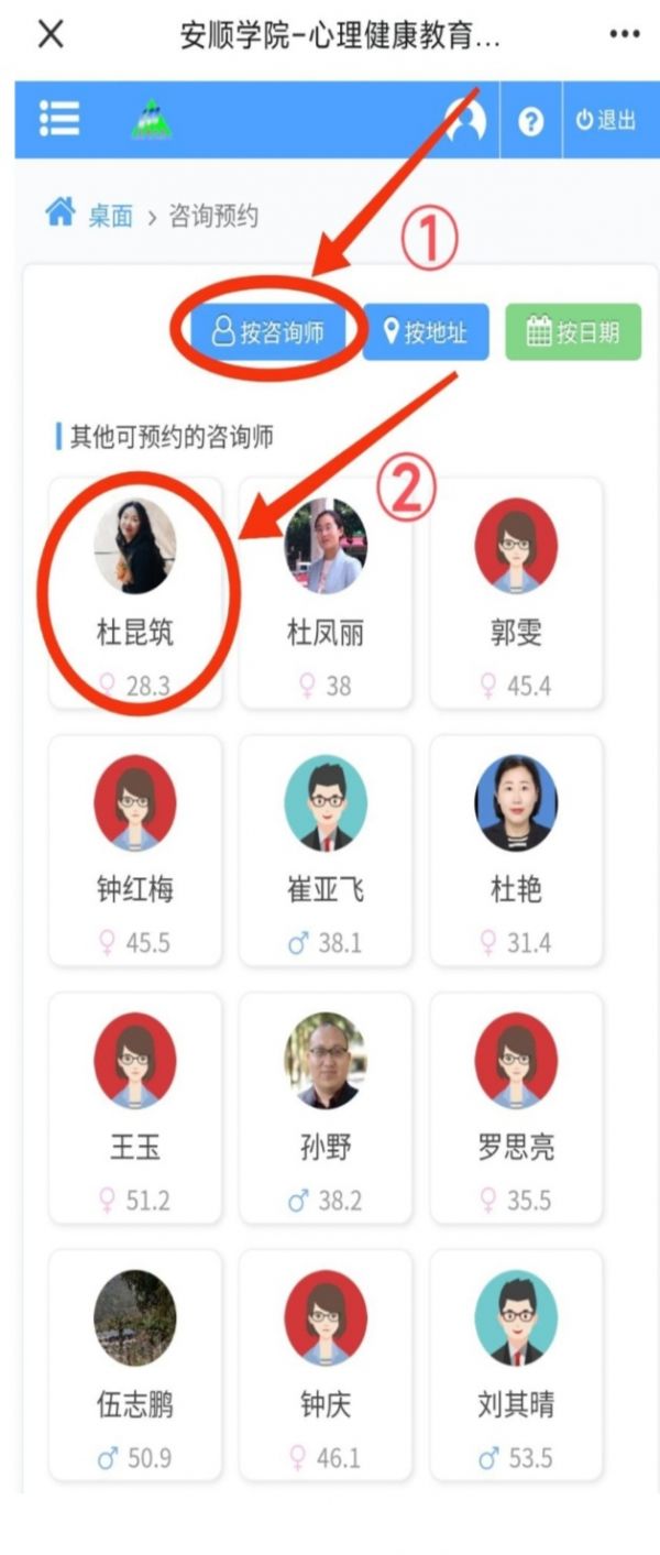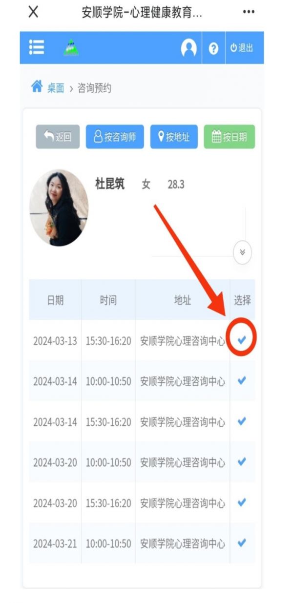 ②根据您选择的可预约时间,查看时间段内的咨询师有哪些,并进行咨询师选择。