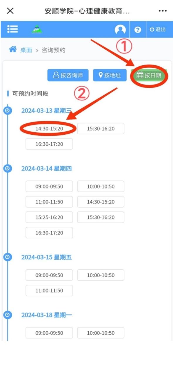 第三步:进行预约,方式分为“按咨询师”和“按日期”两种。
