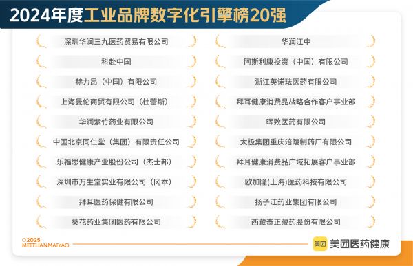 数字化引擎榜中外资药企占比达50% 图源:2024年度工业品牌数字化引擎榜20强