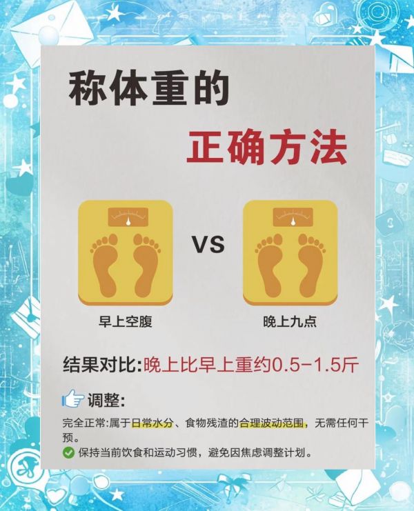 晚上比早上重0.5-1.5斤是正常的,因为早上是体重最轻的时刻。只要饮食健康、热量适中,并且配合适当运动,体重会逐渐下降。