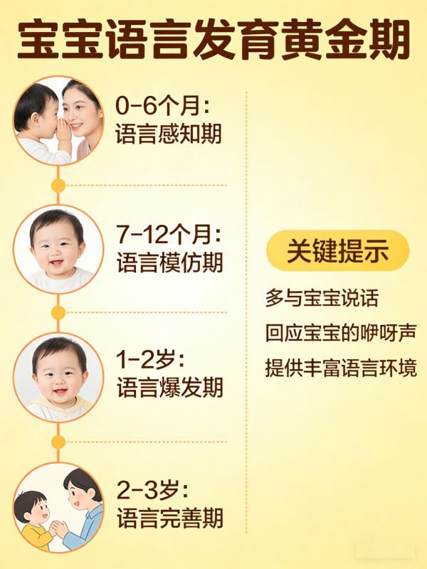 0—3 岁语言黄金期,是宝宝一生语言能力的起点。抓住这个关键阶段,用科学的方法陪伴引导,不仅能让宝宝顺利掌握语言技能,更能助力认知、情绪、社交等全方位发展,让宝宝在成长路上自信表达、从容沟通,收获更广阔的未来。