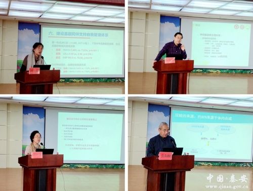 在随后举行的秦安县第二届糖尿病内分泌学术会议上,刘静,权金星,贾光萍,张和顺等省市专家分别作了题为《“基础糖尿病防治队伍的发展”、“甲状腺结节”》、《“新版糖尿病指南解读”、“甲亢的治疗”》、《“糖尿病患者教育在糖尿病护理中的重要性”、“如何建设一支优秀的护理队伍”》、《“中国高尿酸血症的相关疾病诊疗多学科专家共识解读”》的学术报告。
