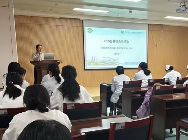 首位开讲的是首都医科大学附属友谊医院消化内科专家董宁宁,她分享的主题是《IBD 合并机会性感染》。炎症性肠病(IBD)是消化内科的重点研究方向,其合并机会性感染的问题备受临床关注。董宁宁专家结合自身丰富的临床经验和研究成果,从 IBD 的发病机制切入,系统阐述了合并感染的危险因素、临床表现与诊断方法,并通过实际案例,介绍了前沿的治疗策略。讲解深入浅出,令在场的消化内科及相关科室医务人员对这一复杂疾病有了更清晰、全面的认识,也为今后的临床工作提供了宝贵的理论参考。