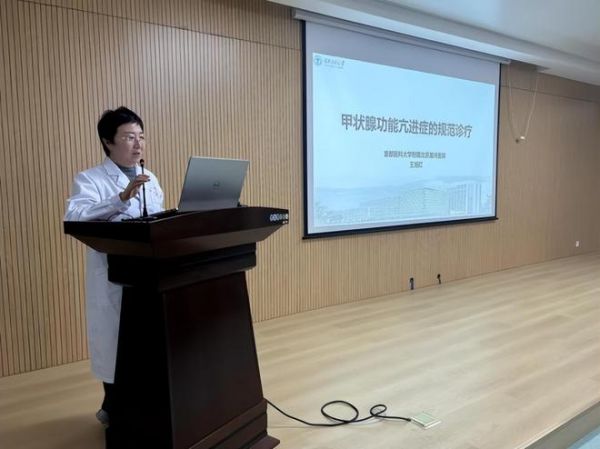 随后,首都医科大学附属潞河医院内分泌科专家王旭红带来了,带来《甲状腺功能亢进症的规范诊治》的精彩内容。甲亢是内分泌科常见病,规范诊疗与患者预后息息相关。王旭红专家从病因、症状、诊断标准及治疗方案等方面展开讲解,着重强调了精准诊断与个体化治疗的重要性,并对临床常见误区进行了细致剖析。内分泌科主任董芒艳与科室同事全程认真聆听、详做笔记,与讲者的精彩内容频频共鸣。