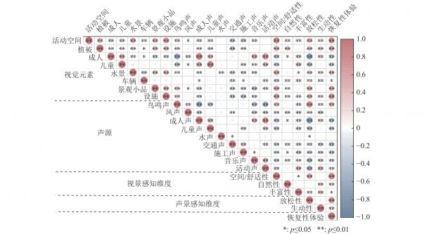 图 3 视听感知因素与恢复体验的相关性结果