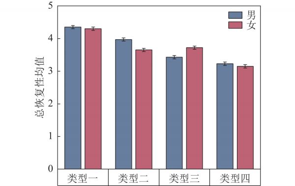 图 7 不同空间类型下恢复体验的性别差异