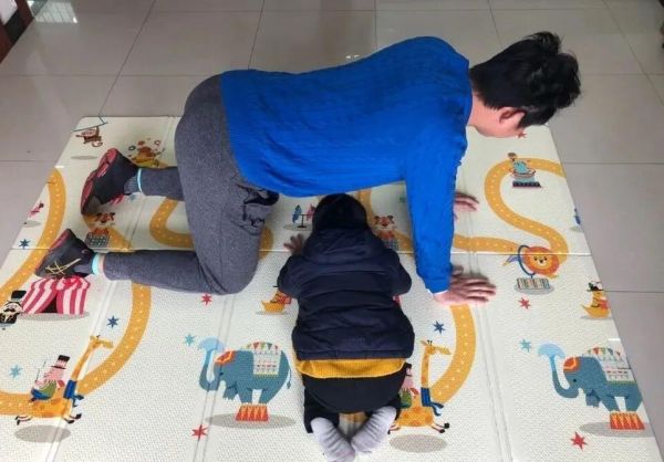 家长以俯卧撑的姿势,形成一座“大山”,而幼儿则需从这座“大山”下钻过,再爬回家长的身边。在游戏中,家长可以通过调整垫子的高度,即改变“大山”的难度,从而增加游戏的挑战性。