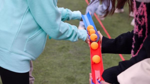 家长则手持篮子,通过手的上下左右移动来改变篮子的位置,幼儿则需根据篮子的位置变化,准确地将报纸球投入其中。