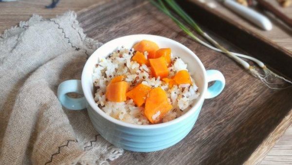 3、南瓜饭(适合十个月以上宝宝,可搭配红薯、杂粮、青菜等食材)