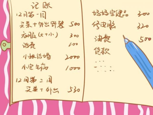 4:生活必需品:日常生活用品,包含和化妆品和老公的烟钱,月均花销大概1000元左右