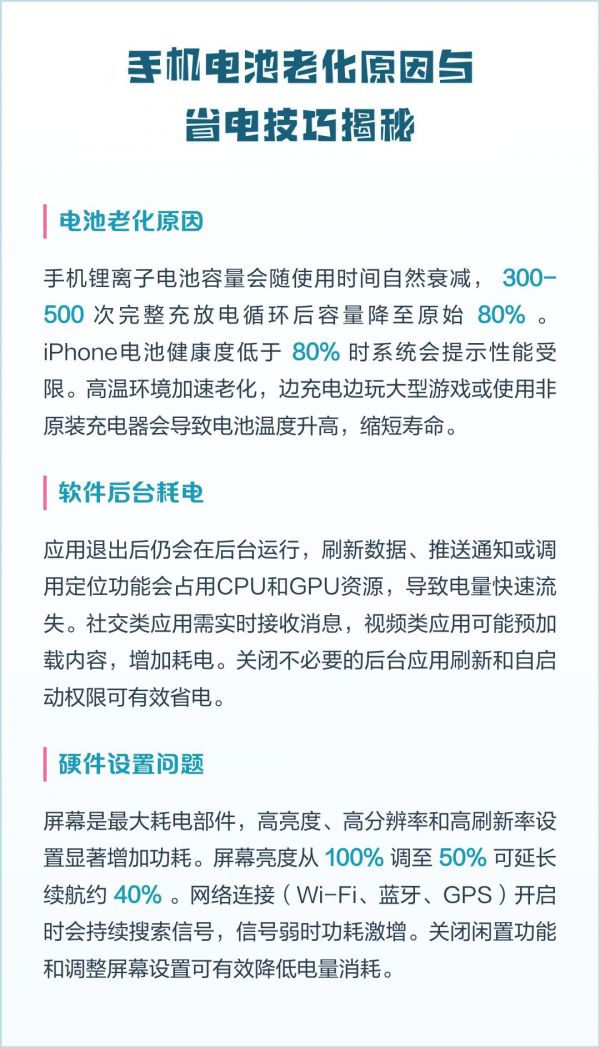 手机电池为啥会老化?这问题其实很简单,手机电池基本都是锂离子电池,用久了容量自然下降。一般充放电300-500次后,容量会降到原来的80%左右。比如iPhone电池健康度低于80%时,系统就会提示性能受限。高温也会加速电池老化,边充电边玩大型游戏或者用非原装充电器,都会让电池温度升高,进一步缩短电池寿命。