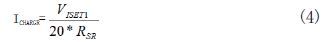 VACSE,是ACSET引脚的输入电压,范围在(0-2)V之间。VISET1=2V,RSR=30mΩ,根据公式(2),充电电流设定为3.1A.