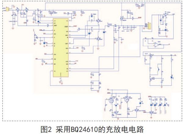 依据参数要求,我们结合BQ24610的特性设计了一套适合四节锂离子电池的充放电系统,电路图如图3所示。该系统是给便携式分子筛制氧机供电,实现了以下设计: