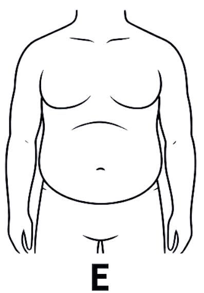 E型: 代谢挑战 E型身材面临代谢紊乱的风险,需警惕因不良生活习惯造成的问题,可能影响健康。这类E型男士,通常处于健身的初级阶段,面临着“换肤期”的挑战。他们的典型特征是上半身脂肪堆积,尤其是腹部松弛和胸肌下垂,这通常是由于长期熬夜、久坐不动以及重油重盐的饮食习惯所致。事实上,这类人已经处于代谢紊乱的边缘,健康风险日益临近。