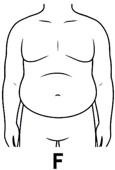 F型: 腹型肥胖 该体型为中年危机的体现,影响职场与感情生活。需要深刻的生活方式变革以应对。F型身材,成为众多40岁以上缺乏运动男性的真实写照。腹部隆起,腰围超标,背部厚重,颈部缩短,整体形象显得疲惫、衰老,缺乏自信。这一类身材,无疑成为了中年危机的生动写照。它不仅会让你在职场竞争中处于劣势,更会在感情生活中削弱你的自信,进而导致整体生活质量的逐步下滑。因此,对于F型身材的你来说,单纯的“偶尔动动”显然已不足以应对这一挑战。你需要的是进行一场深刻的生活方式变革,从内到外焕发新的活力。幸运的是,无论你现在身处何种境地,只要愿意重新开始,一切都还来得及。