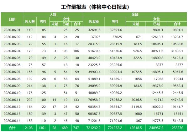 体检系统具有丰富的报表查询统计功能,为管理者科学决策提供依据,掌握体检发展趋势和学术研究。其报表以医院和科室的实际要求为主,格式符合上级部门和相关部门要求,且具有饼图、直方图、折线图等,支持导出导入。